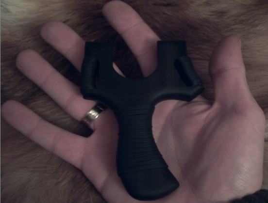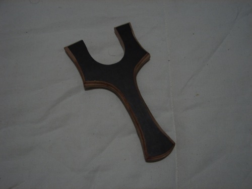 This slingshot is one of my absolute favourites. It is nothing but a simple cut from thin plywood - it was never meant to be much more than a prototype- but it fits my hand so well that it became my standard to-go slingshot! Its slight curves on the outer lines of the fork give the fingers a good, comfortable grip.