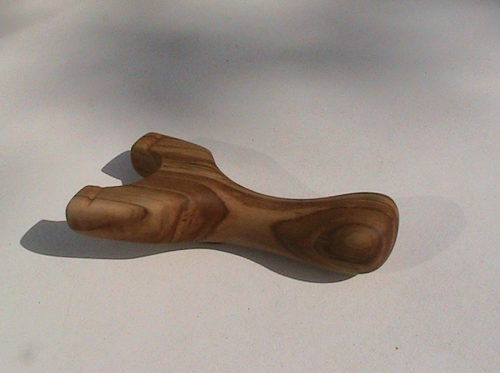 A very small pocket slingshot, carved with a Dremel from olive wood.