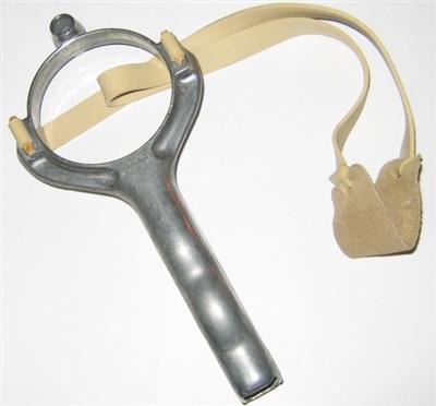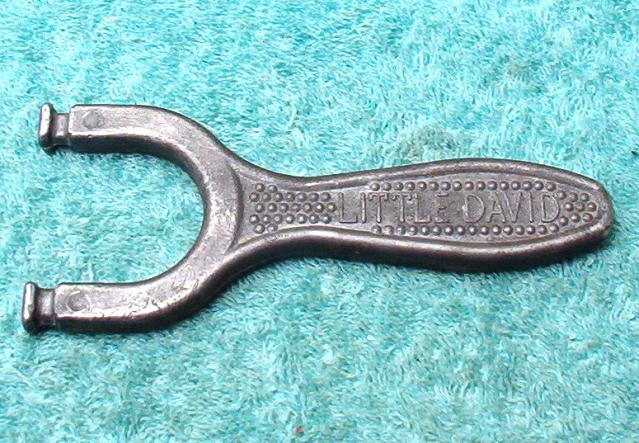 The "Little David" is a small pocket slingshot that was made from cast metal.