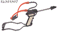 The Marksman "Fireball" was an all-plastic slingshot. It had an ammo storage that released a steel ball when the button on the front was pressed. Its handle had an unusual shape with a thick part that was meant to be supported by thumb and index finger. I have a "Fireball", and so far never found any shooter who liked the Fireball's grip. Marksman produced two versions of this slingshot. One - probably the earlier model - accepted flat bands that were held in place by studs that were molded on the rear side. The second versions uses tubular bands. Both versions have a round (rather useless) peep sight that can be installed on either side of the fork.