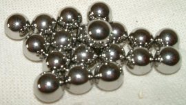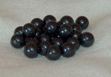 Lead has the highest density of all common materials, so a lead ball gets interesting if you need some heavy ammunition. Not surprisingly, lead balls are most popular among hunters who need every bit of power to down their quarry humanely. The relatively high price can be lowered to almost zero if a mold is used to cast ammo by yourself. Disadvantages of the lead ammo are the environmental and health problems that come along with lead, and the soft balls deform quickly when they strike a hard surface. Therefore, I recommend lead balls to hunters only, and to people who want to create extraordinary powerful slingshots. As lead is so dense, there's usually no need for calibers over .50, a cal .44 ball is considered as a very good hunting ammo.