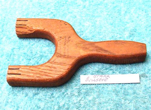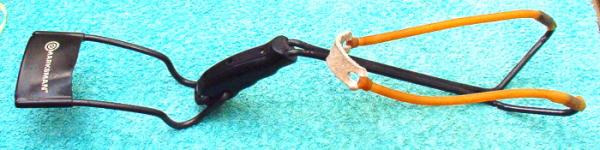 Can you believe it? Marksman once sold this huge extended-fork slingshot. It shares handle and Wristbrace with the model 3040, but has a very long fork, made of stronger steel than today's marksman models use.