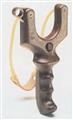 This nice cast aluminum slingshot has a deep groove for thumb support.